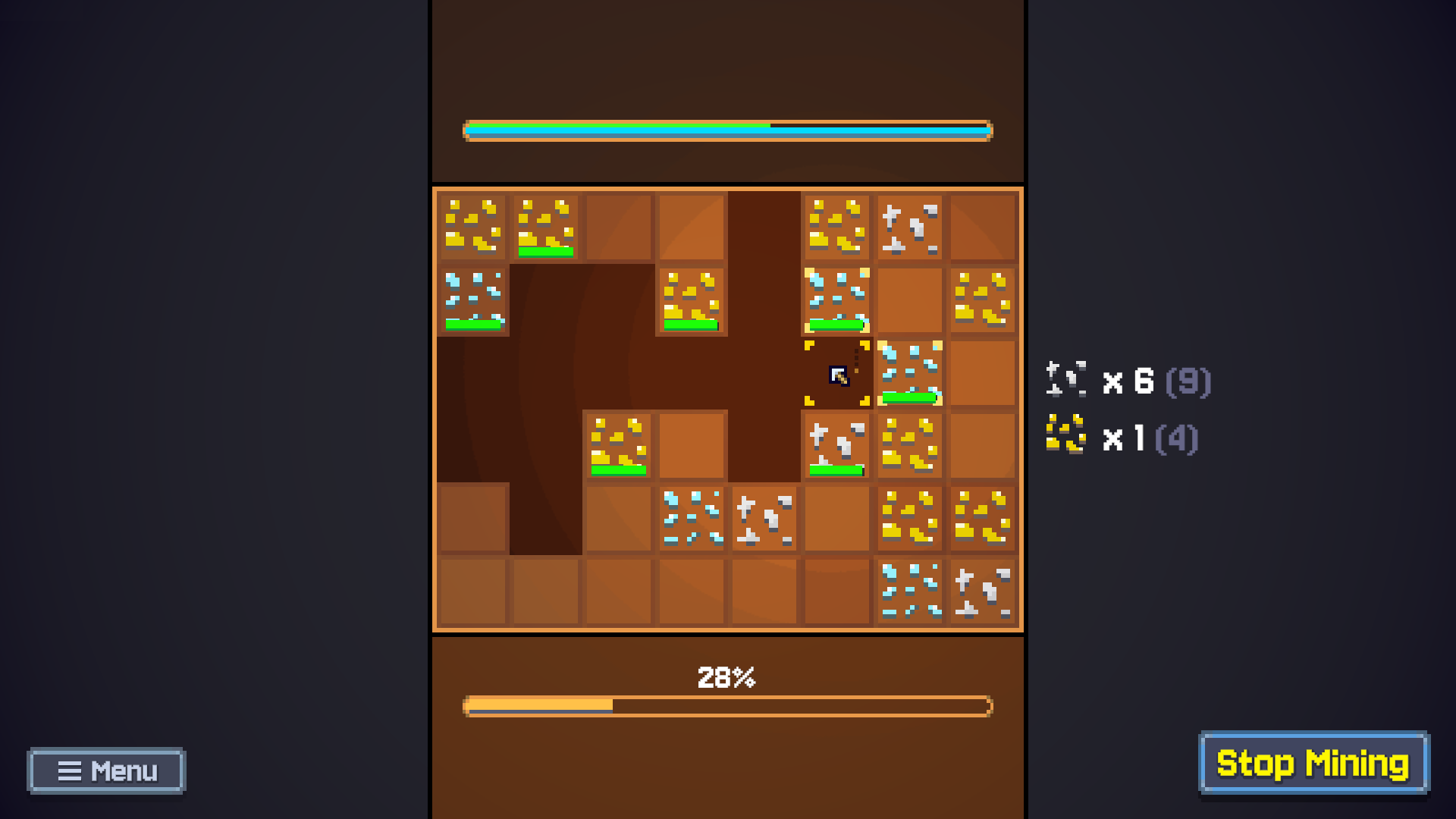 Satisfying sound design, seconding that some extra distinction between ore types would be helpful. Would also be good if you could rotate the "mine area" once you've unlocked extra squares - adds a bit of a puzzle element for how to deal the optimal damage.