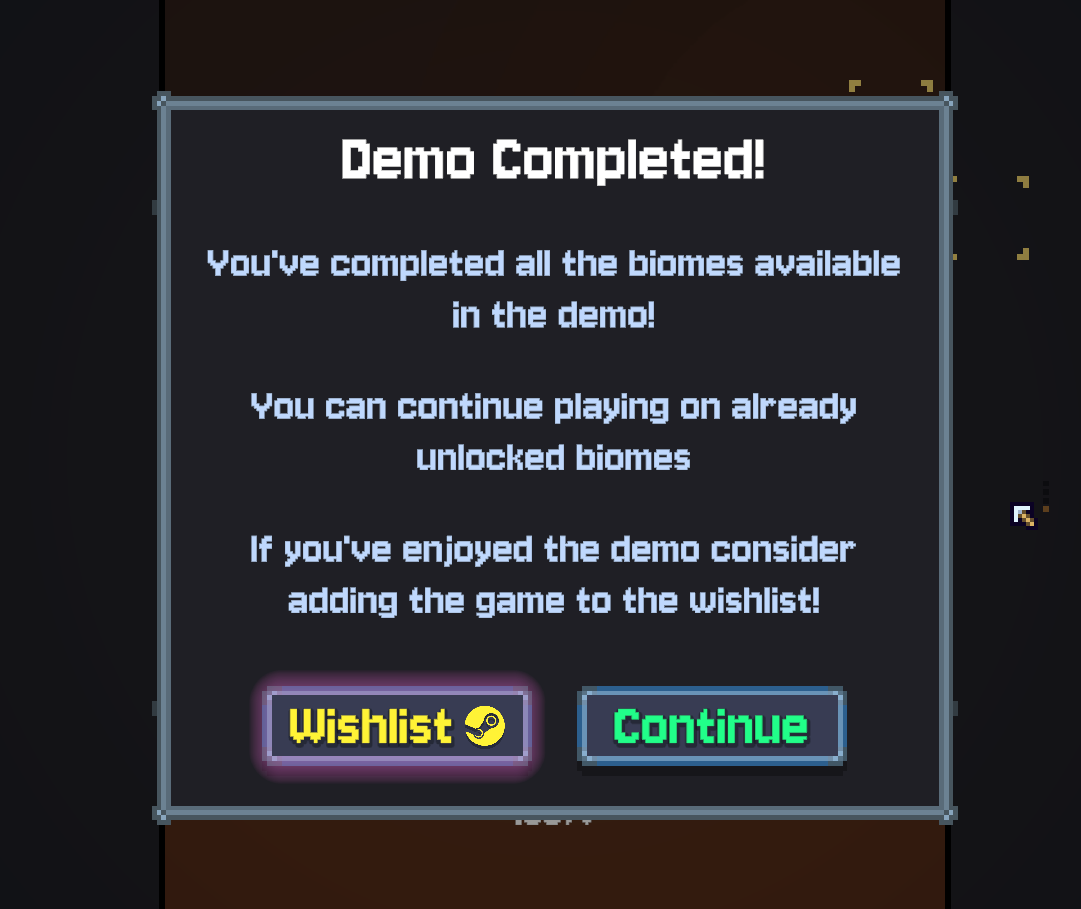 Demo includes 3 out of 10 planned biomes and takes about 30-45 minutes to complete.